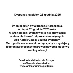 Kolęda na Piłsudskiego 2, Strażackiej 1,1A,1B oraz Nadbrzeżnej 35 odbędzie się 20 stycznia 2026. Szulmińskiego, Kapuckiej 25 i Kamińskiego 20A – 21 stycznia 2026.
